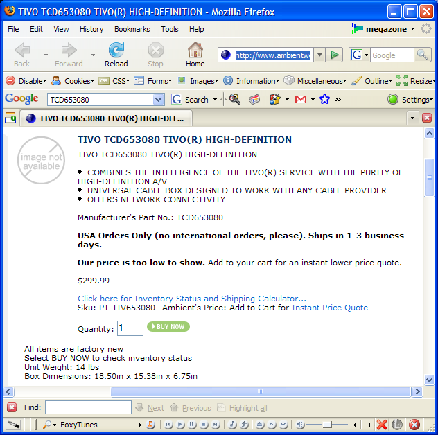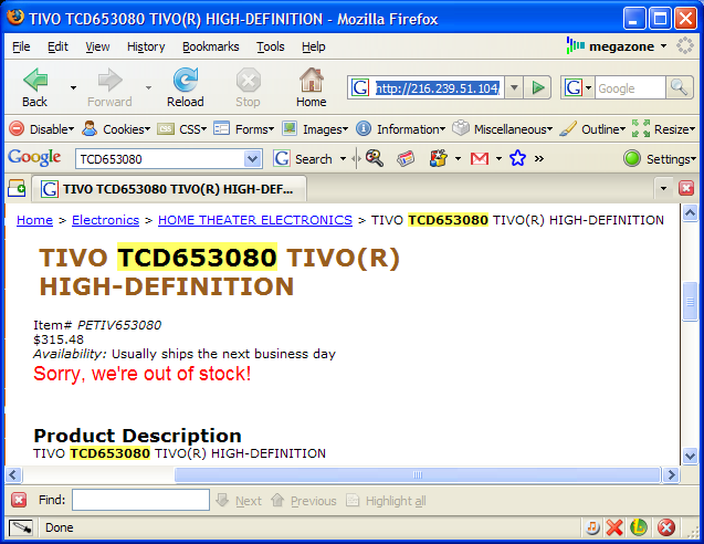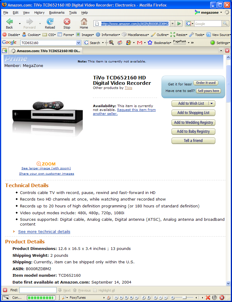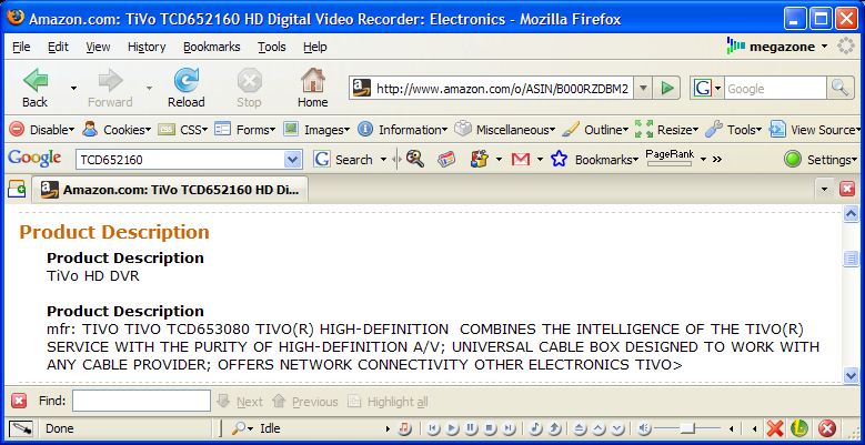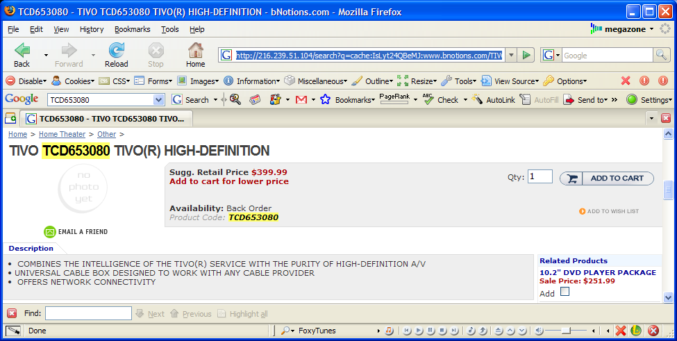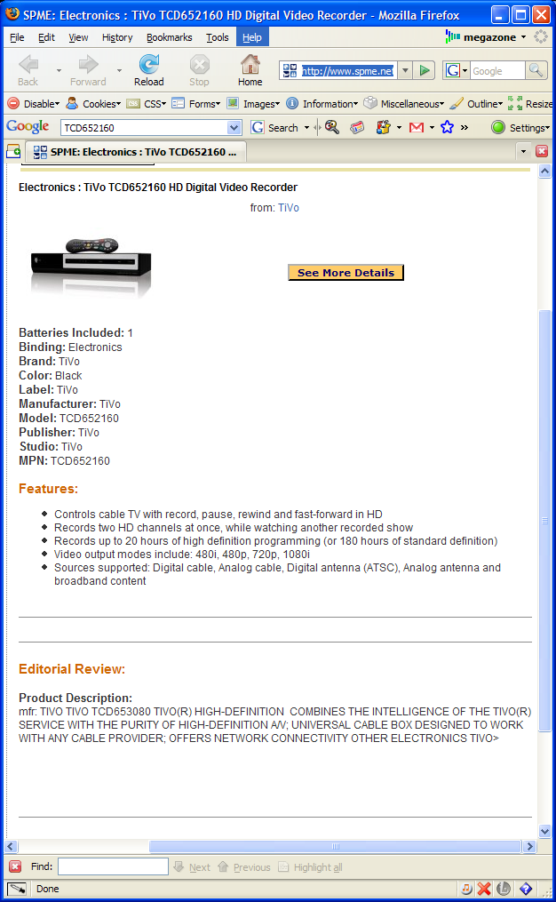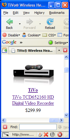 Not really any new information compared to what’s already been posted, but I thought capturing these for posterity would be nice. You can still find many of these pages in Google’s Cache. Just a little tease while we all wait for the official word from TiVo on the TCD652160.