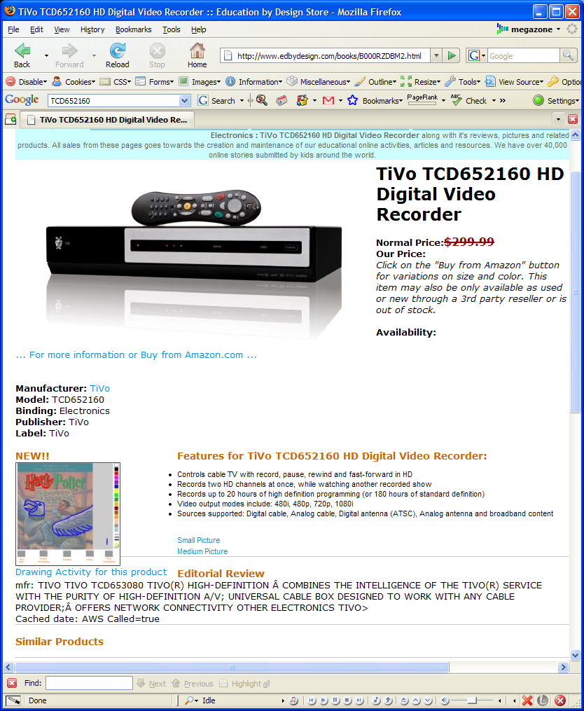 And these are shots from other sites that had pages up: EdByDesign, SPME, AmbientWeather, bNotions, Epinions, MayberryLane, and TelevisionSteals.