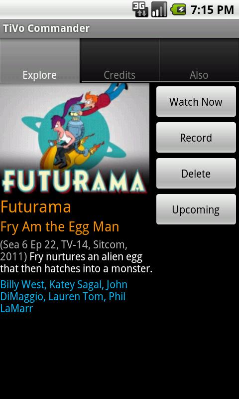 If you have a TiVo Series3 or Tivo HD and you’re looking for an Android app, Tim Hoeck’s TiVoRemote is still in the market for $0.99. I’ve had this on my Droid pretty much since it was released.